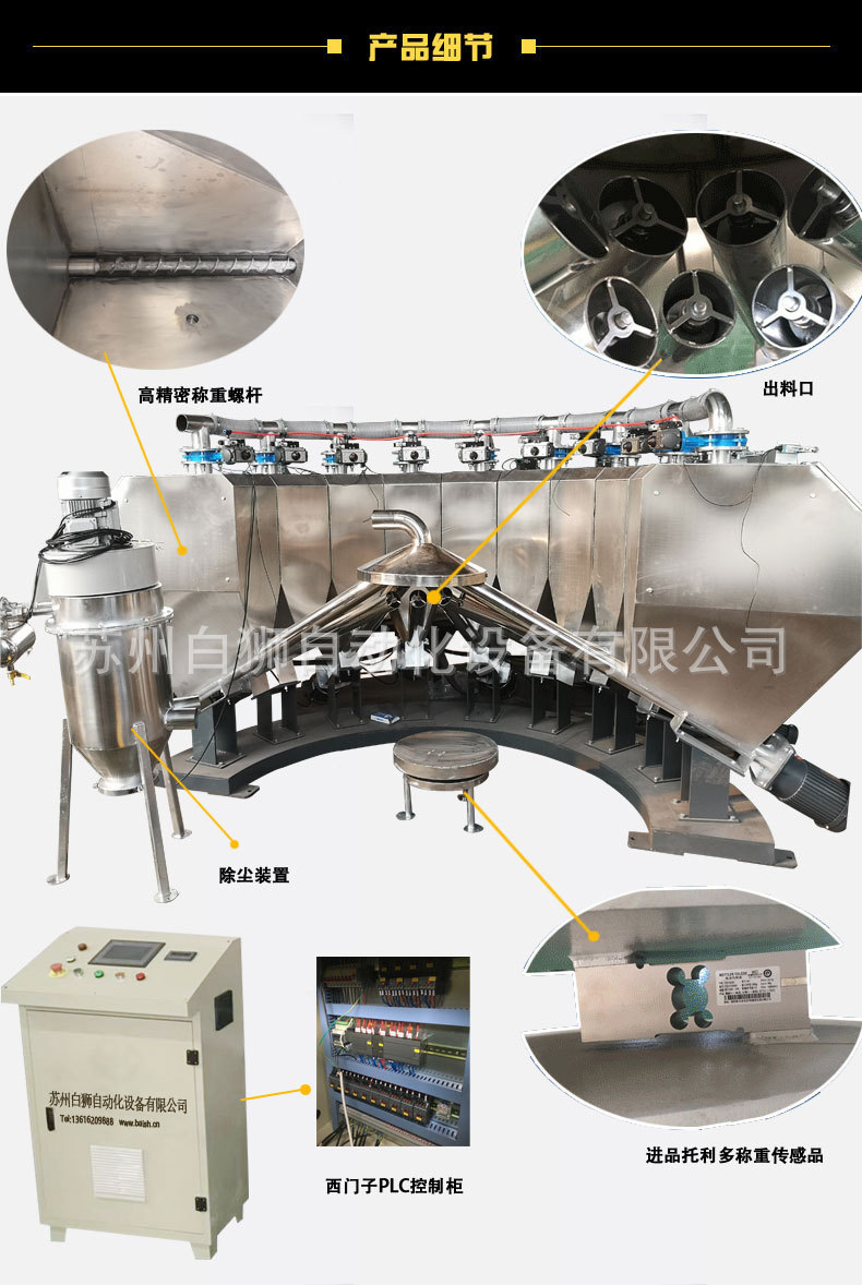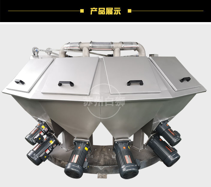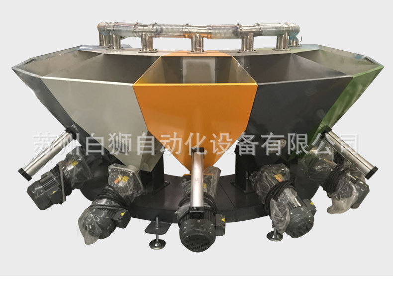 1、 單種物料誤差10克以內,九種原料(15KG)料兩分鐘左右。設備的型號一般配有4-9個料斗,容積約150-200L,也可根據客戶需求進行定制。常規配置中無料倉及接料斗除塵裝置。若帶料倉及接料斗除塵裝置,用管道及氣動閥門連接,分別用于料倉及接料斗除塵。