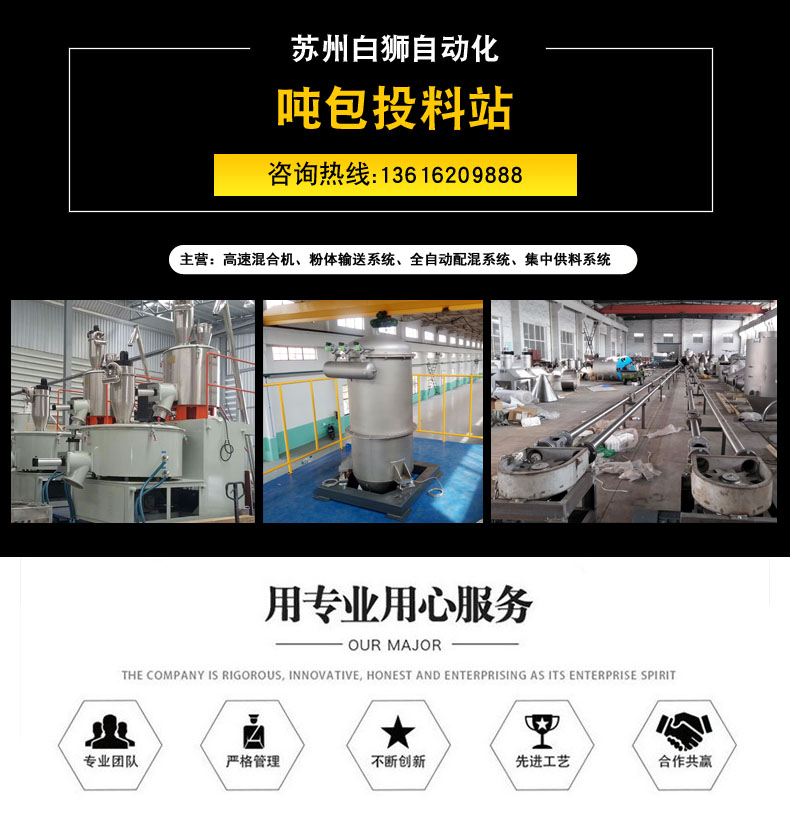 --作為蘇州領先的投料站制造商,蘇州白獅一直致力于為客戶提供極具性價比和競爭力的噸包投料站,誠邀經銷商加盟合作。