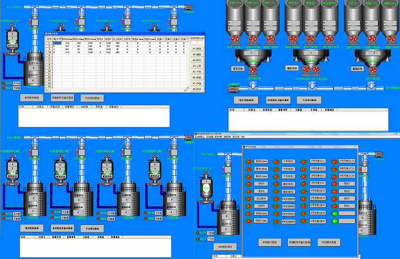 4) 配料稱重系統采運行于Windows系統平臺,運行更快速,更穩定,實時動態生產畫面,展現生產進程,操作直觀、清楚、自動恢復功能。